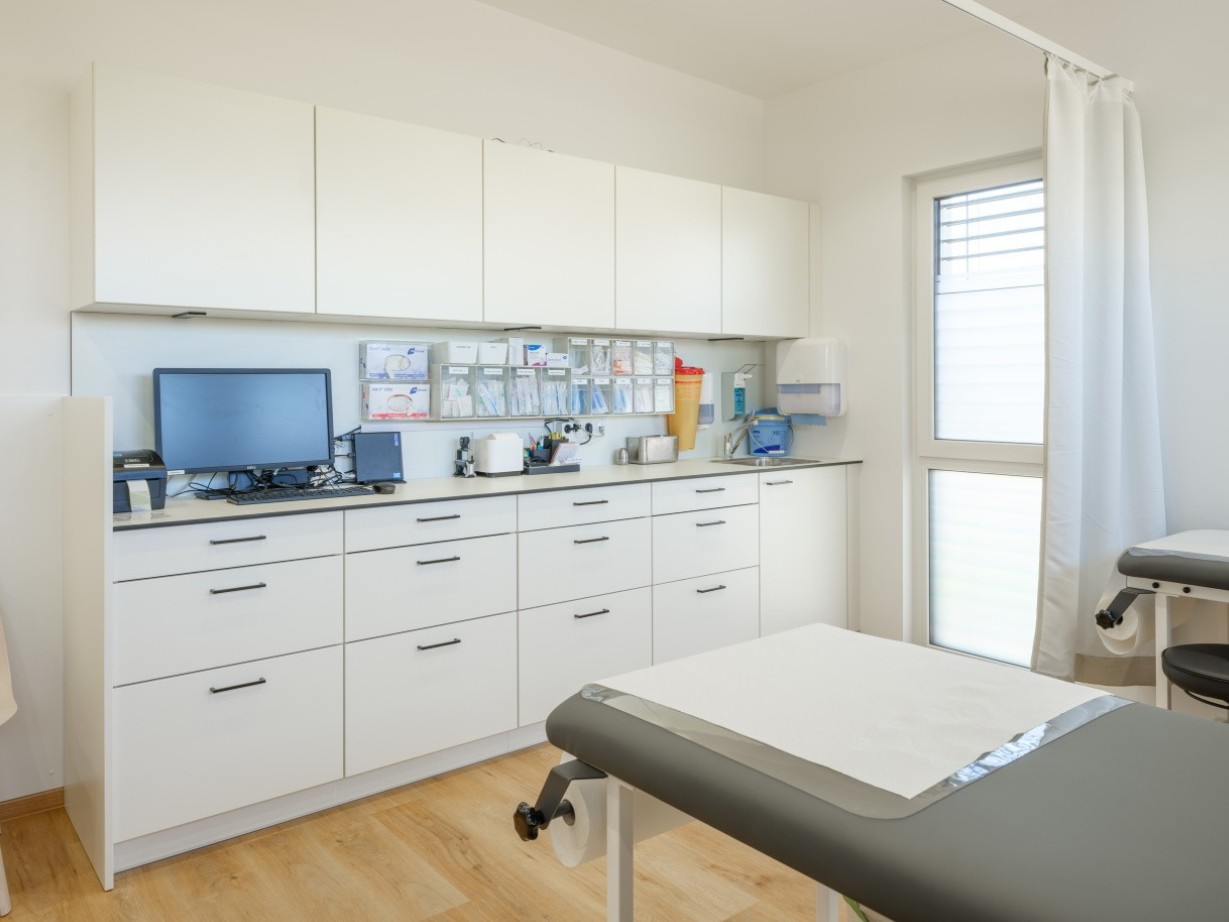 Moderne Arztpraxis mit durchdachter Raumstruktur und hygienischer Ausstattung.