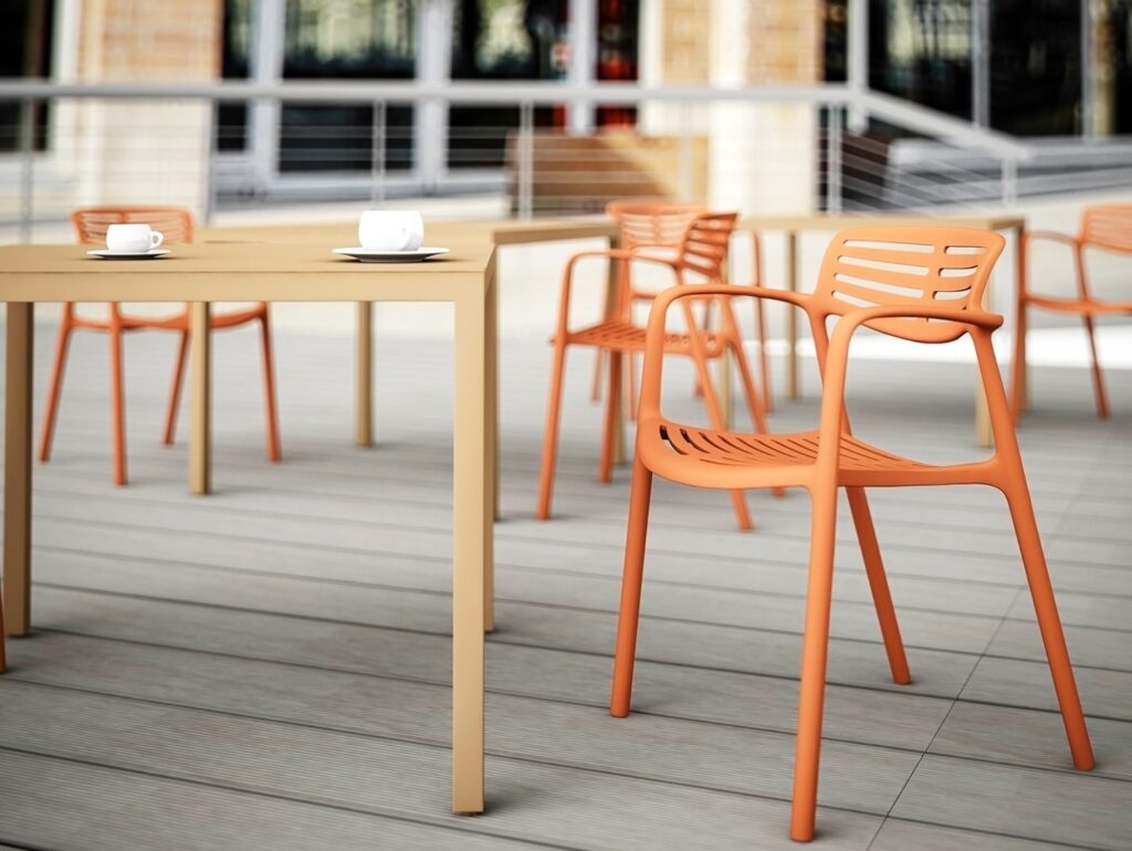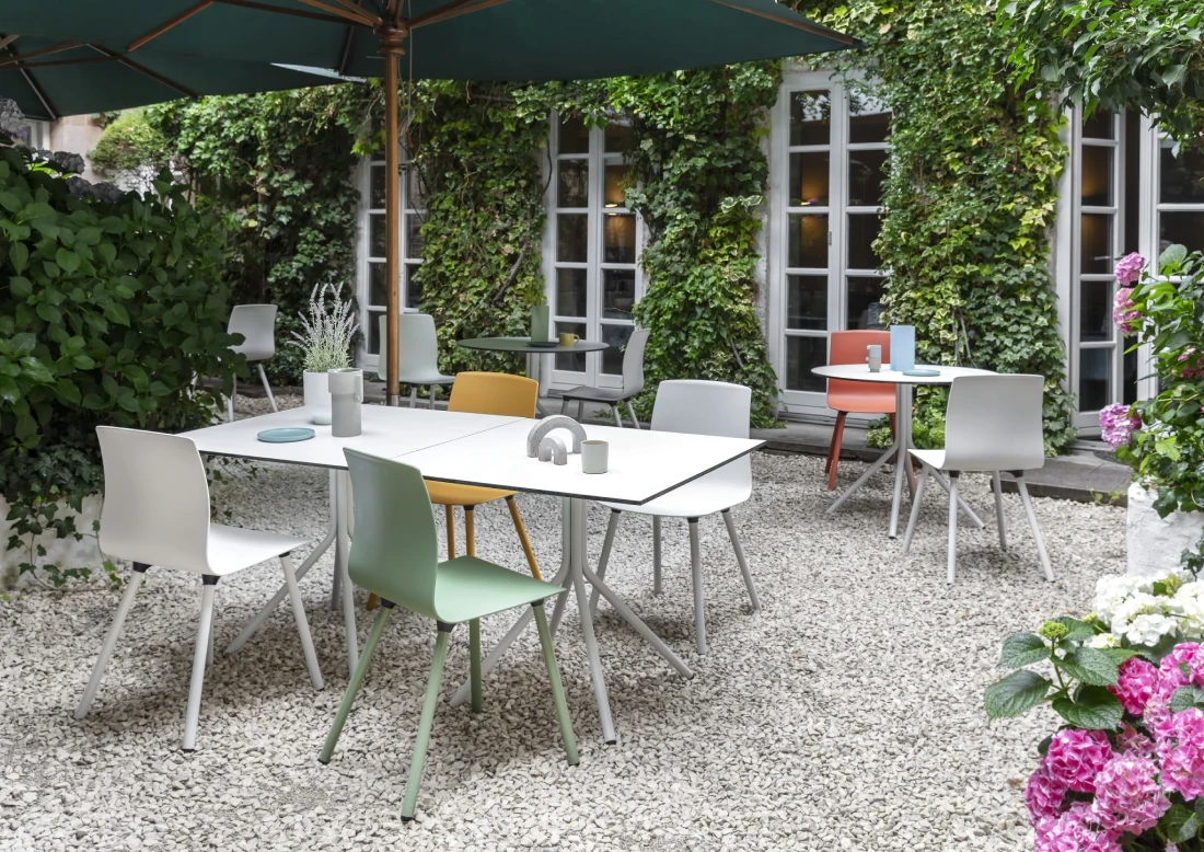 Pedrali steht für hochwertiges italienisches Design. Die Outdoor-Kollektionen bieten formschöne Tische und Stühle für Terrassen, Cafeterien oder Rooftop-Bereiche – ideal für Unternehmen, die Funktionalität mit mediterraner Leichtigkeit verbinden möchten.