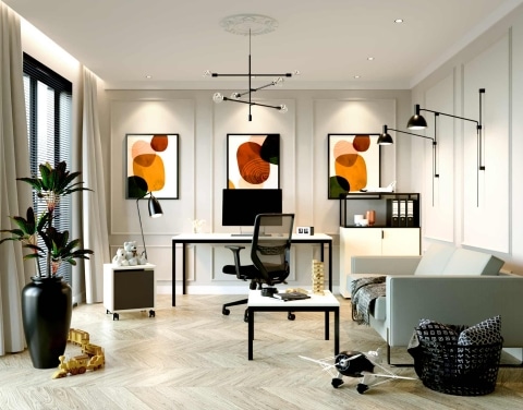 Neben einem ansprechenden Büromöbel-Stil gehört eine angenehme Beleuchtung am Arbeitsplatz zu den wichtigsten Einflüssen, die dafür sorgen, dass wir uns in unserem Büroumfeld wohl und produktiv fühlen. Sie entlastet die Augen und schützt vor zu schneller Ermüdung. Am besten ist Tageslicht, deshalb sollte, sofern möglich, bei natürlichem Licht gearbeitet werden: Stell den Schreibtisch ans Fenster, mach die Vorhänge auf und passe deine Arbeitszeiten an den Tagesverlauf an.