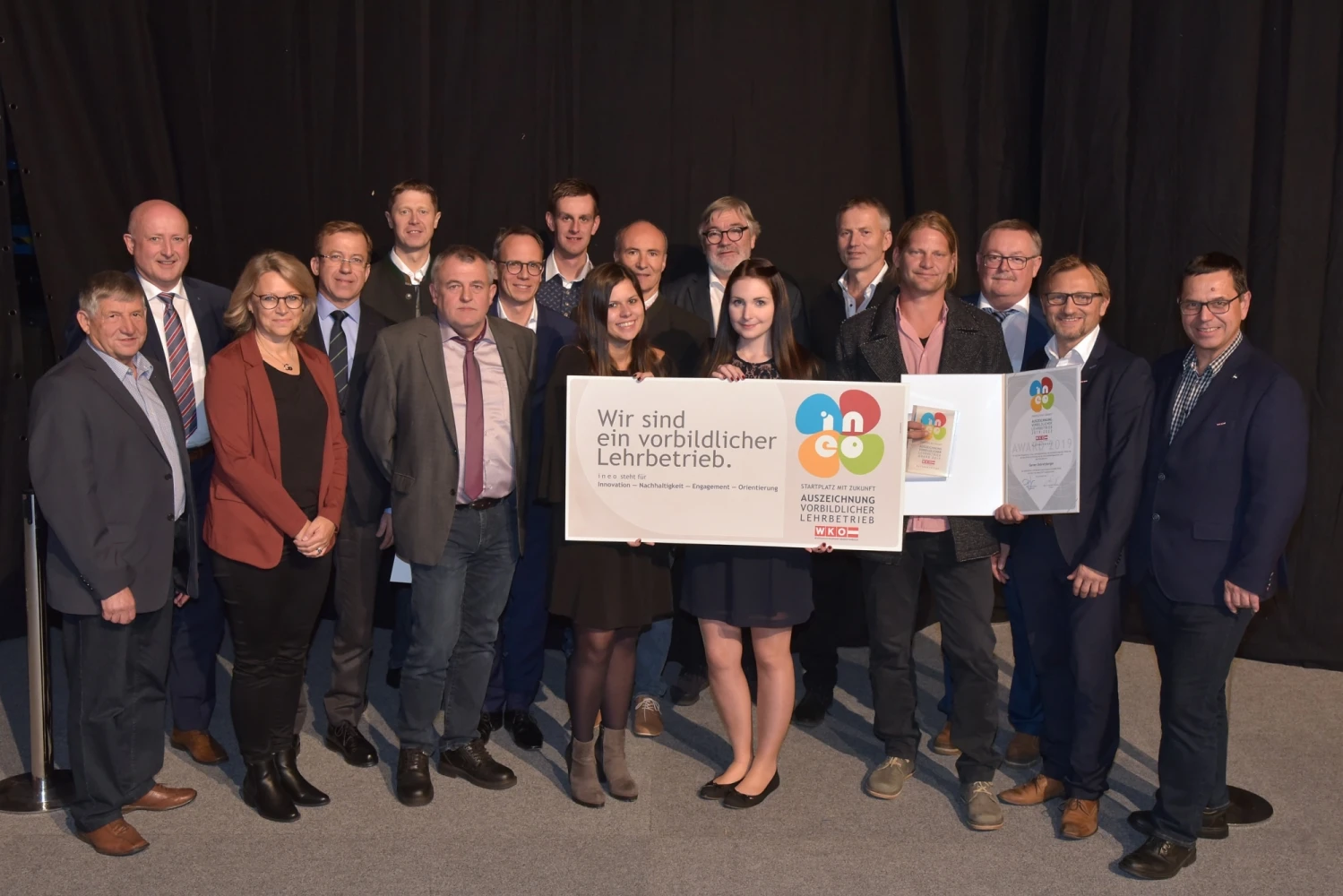 „i n e o“ steht für Innovation, Nachhaltigkeit, Engagement und Orientierung und wird von der WKOÖ an Firmen, die sich besonders für vorbildliches Engagement in der Lehrlingsausbildung auszeichnen, verliehen.