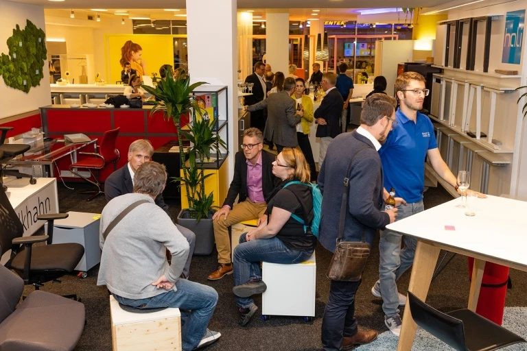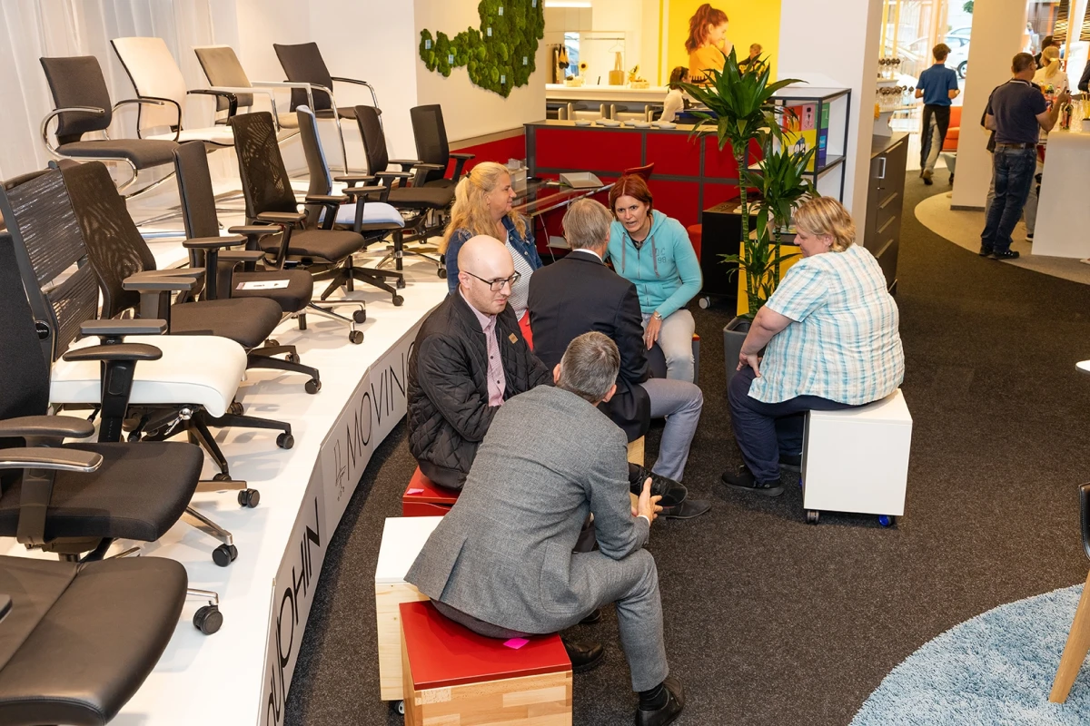 Bei leckerem Street-Food Häppchen, süßer Erdbeer-Schokoladeneis-Kombi und entspannter Stimmung, konnten nicht nur unsere Kund*innen sondern auch alle Mitarbeiter*innen der Niederlassung Wien das Event in vollen Zügen genießen. Neue Produkte, wie die „Privat Bulls“ und das neue Tisch- und Regal System s600 wurden ausgestellt und gleich von den Gästen getestet. Dabei konnte unser Entwicklungsleiter gemeinsam mit zwei Sozialwissenschaftlern wichtige Erkenntnisse über die Bedürfnisse der Nutzer*innen sammeln.