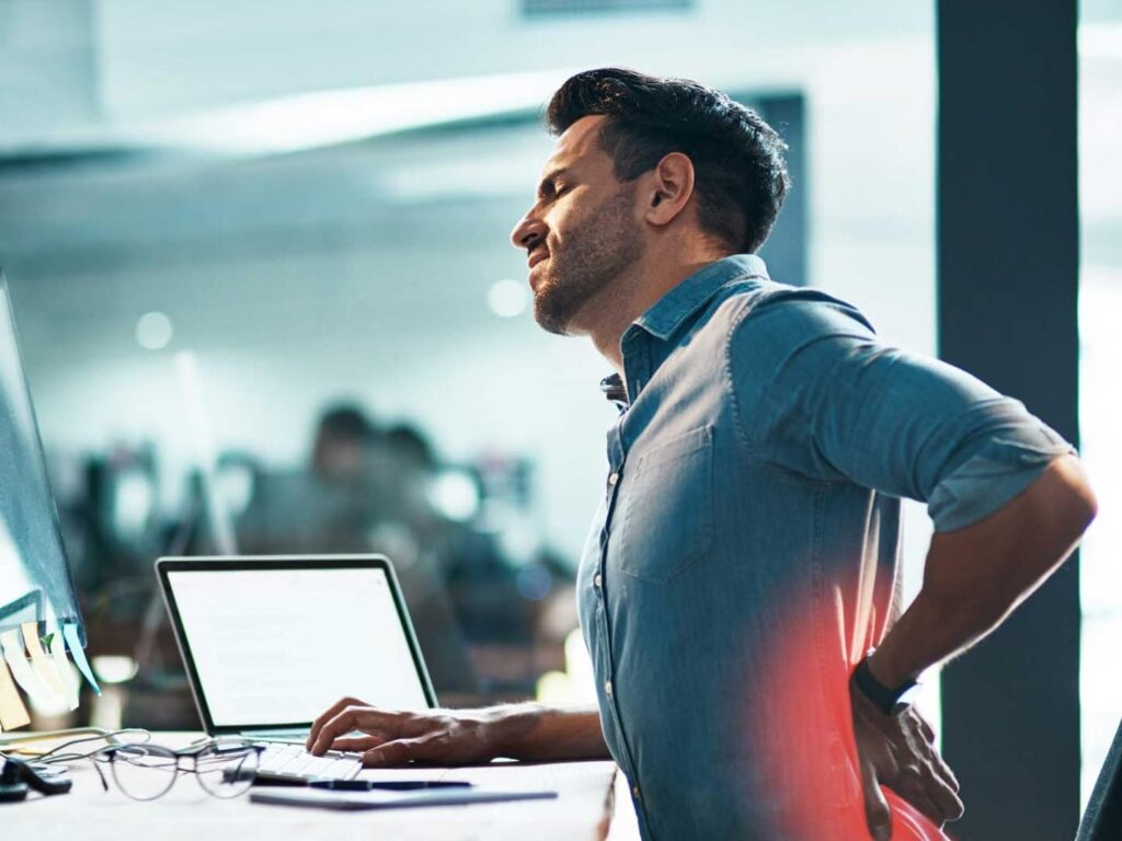 Mann mit Rückschmerzen durch schlechte Haltung im Büro