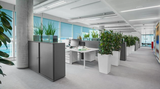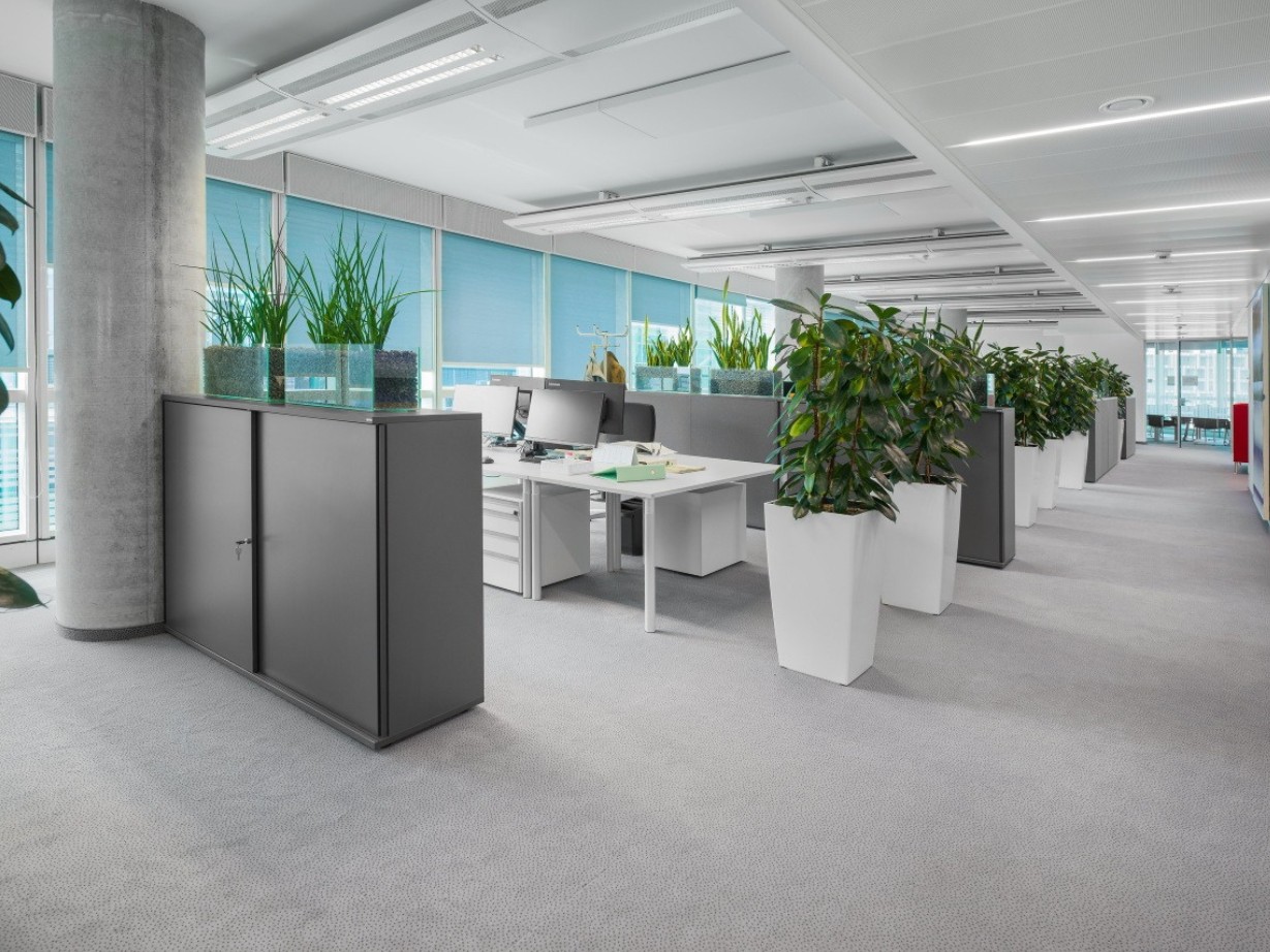 Effizienz im Großraumbüro steigern: Das Großraumbüro ist für viele Konzerne Alltag und eine Herausforderung für Produktivität und Kommunikation. Mit ergonomischen Schreibtischen, flexiblen Meetingzonen und Stauraumlösungen entstehen Arbeitsbereiche, die sowohl Konzentration als auch Austausch ermöglichen. So bleibt dein Büro lebendig und effizient zugleich.