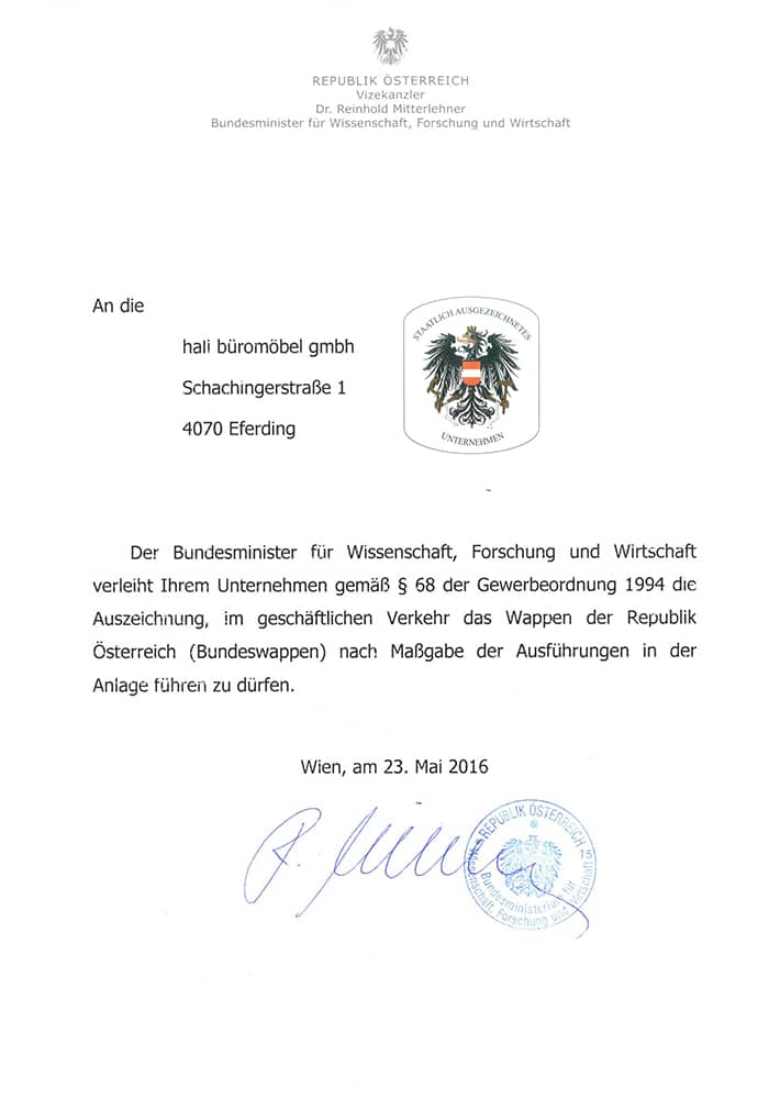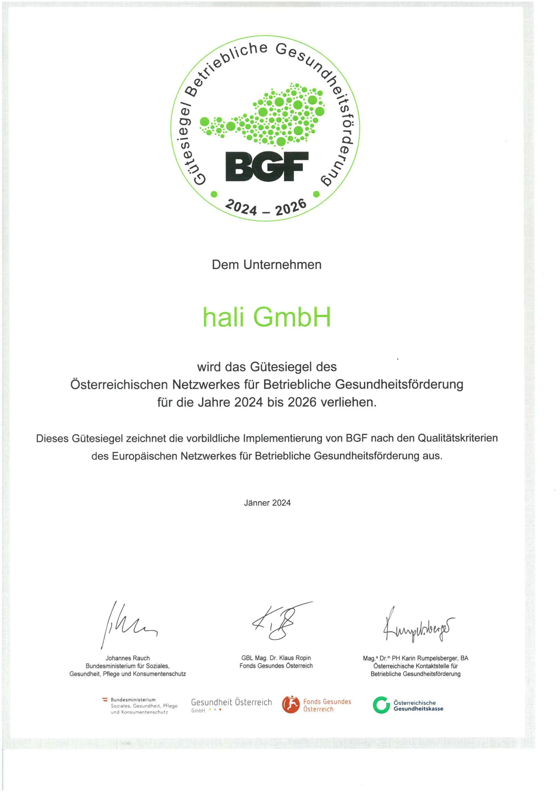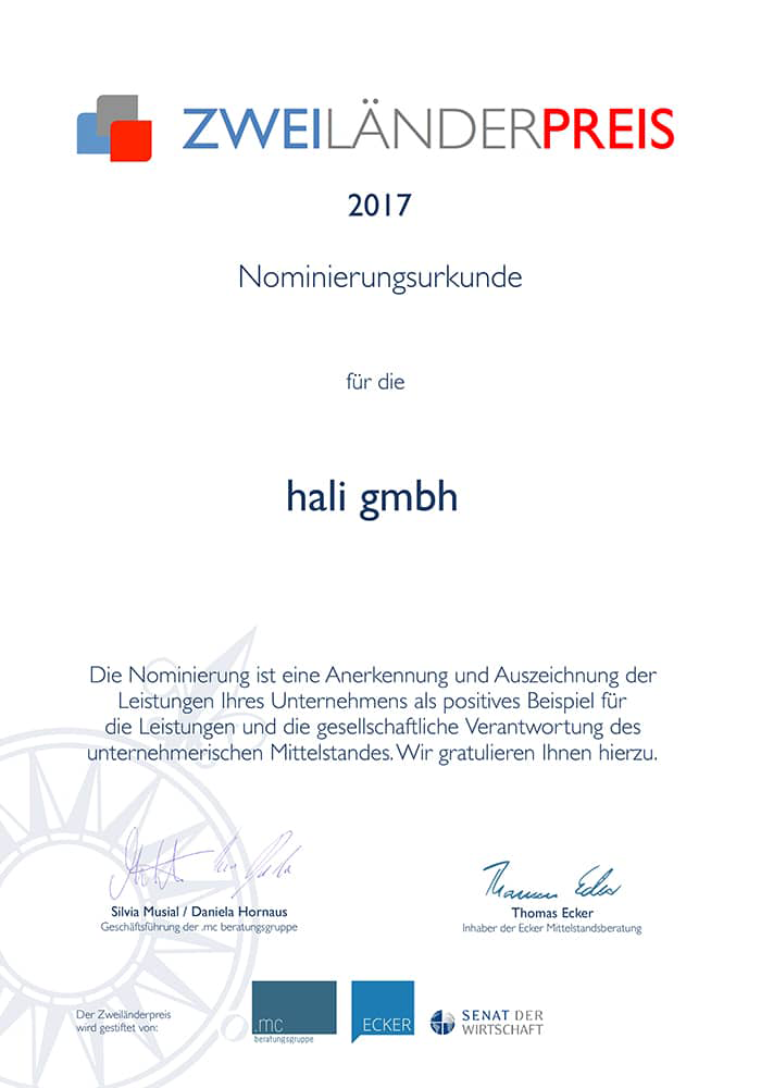 Zertifikate & Auszeichnungen – Downloads | hali.at