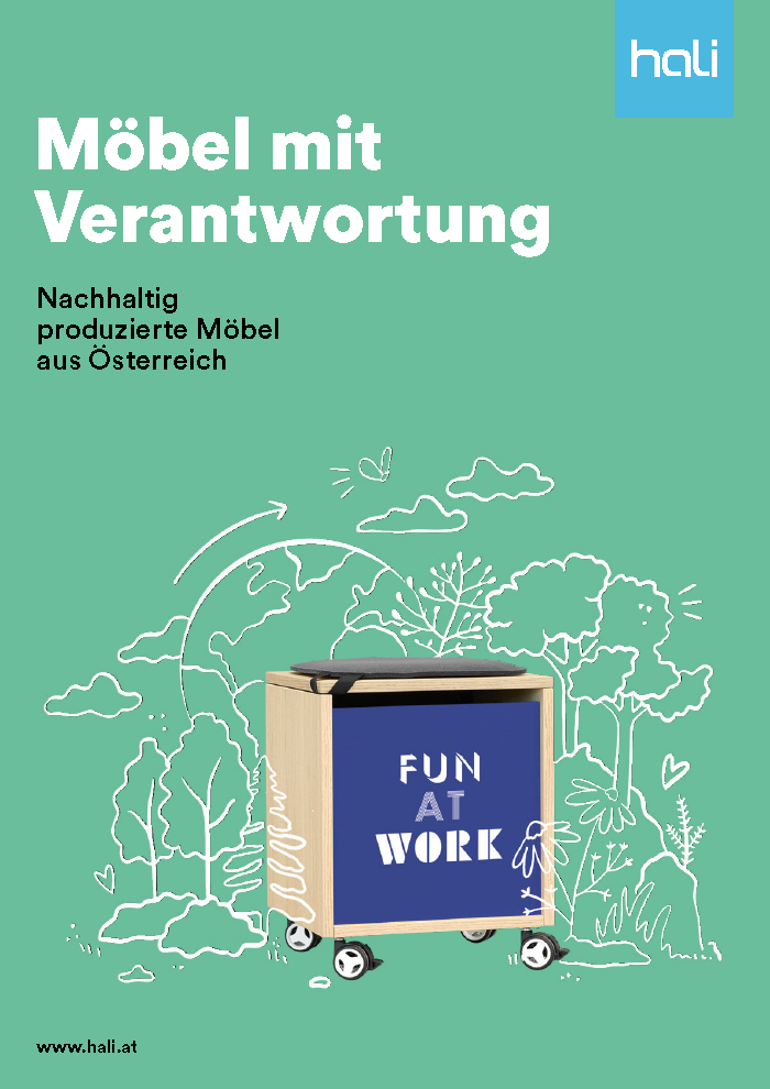 Zwölf renommierte österreichische Vorzeige- unternehmen sind Teil des klimaaktiv Pakts. hali hat sich ebenfalls den Maßnahmen für den Klimaschutz verpflichtet und ist das einzige Unternehmen der Büromöbelbranche, das sich dem Pakt verpflichtet hat. Damit fördert hali aber nicht nur Nachhaltigkeit bei Büromöbeln, sondern trägt auch in anderen Bereichen zu mehr Nachhaltigkeit bei.