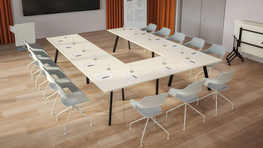 Schlankes Design, vielseitiger Einsatz: Der Besprechungstisch m500 in der U-Form ist ideal für Workshops und Schulungen und fördert die Interaktion und Zusammenarbeit im Team.