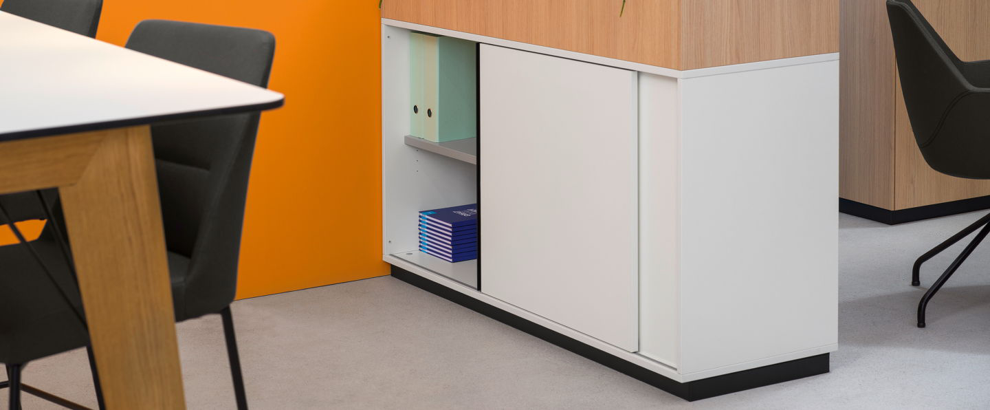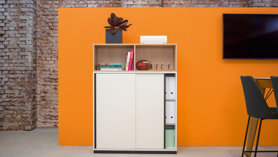 Der Box Schiebetürenschrank bringt Stauraum und Struktur ins Büro – mit klarer Linie, platzsparender Funktion und viel Gestaltungsfreiheit. Für alle, Ordnung schätzen und Platzwunder brauchen.