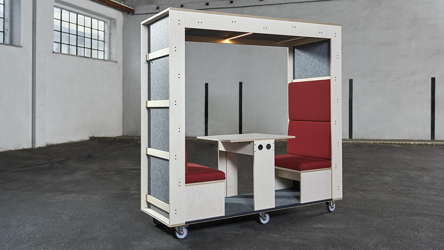 Start-Up-Feeling statt verstaubter Konferenzzimmer: Der Chat bietet einen offenen Rückzugsort für Meetings, Telefonate oder konzentriertes Arbeiten. Wahlweise für 2 oder 4 Personen erhältlich, mit Zugang von beiden Seiten und ausgestattet mit Sitzpolstern und Rückenlehnen in Stoff oder Kunstleder.