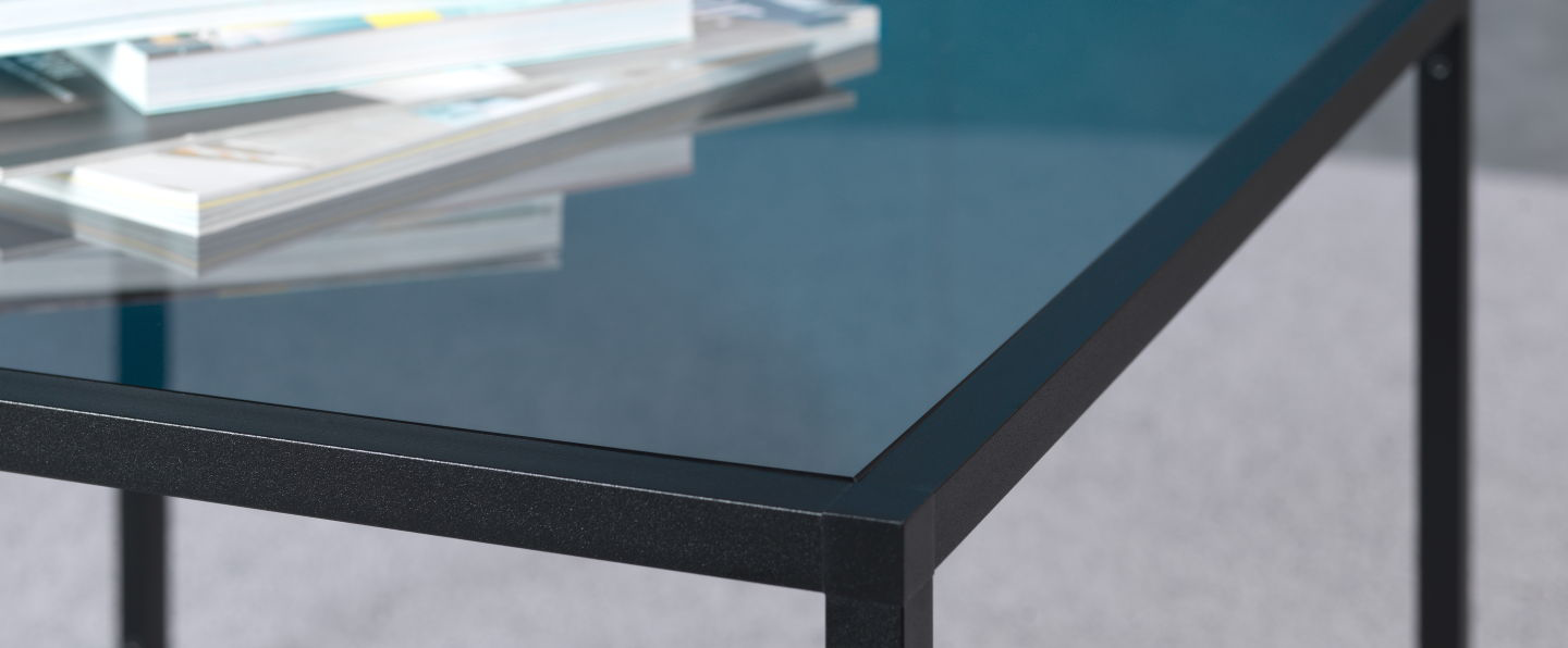 Moderner Couchtisch mit Aluminiumgestell und wahlweise Glas- oder Feinspanplatten – leicht, stabil und perfekt für Lounges.