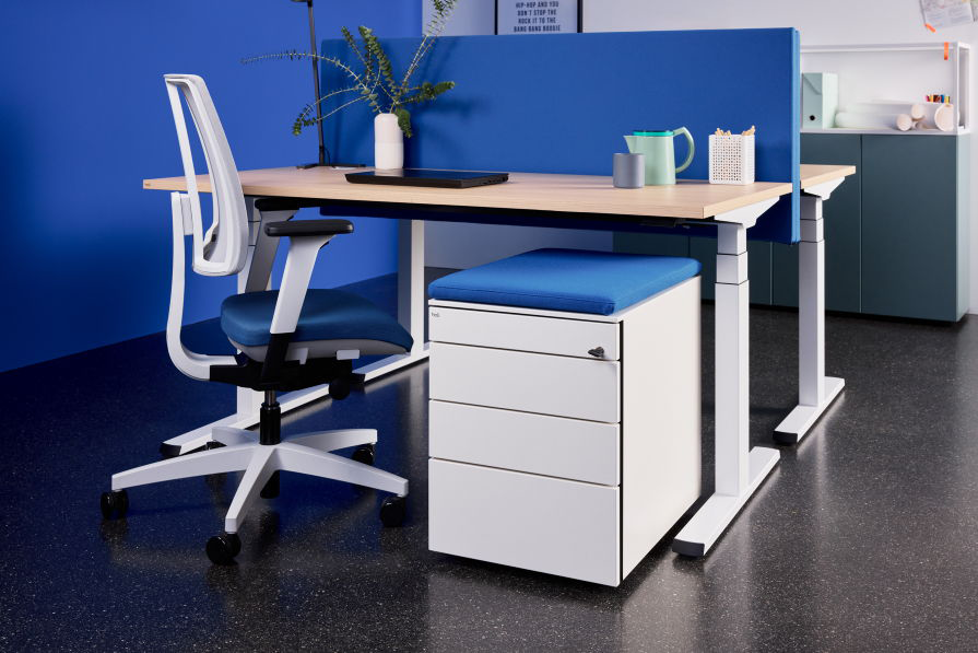 Der s136 bringt Bewegung in deinen Arbeitsalltag. Per Knopfdruck kannst du zwischen Sitzen und Stehen wechseln – ergonomisch und leise.