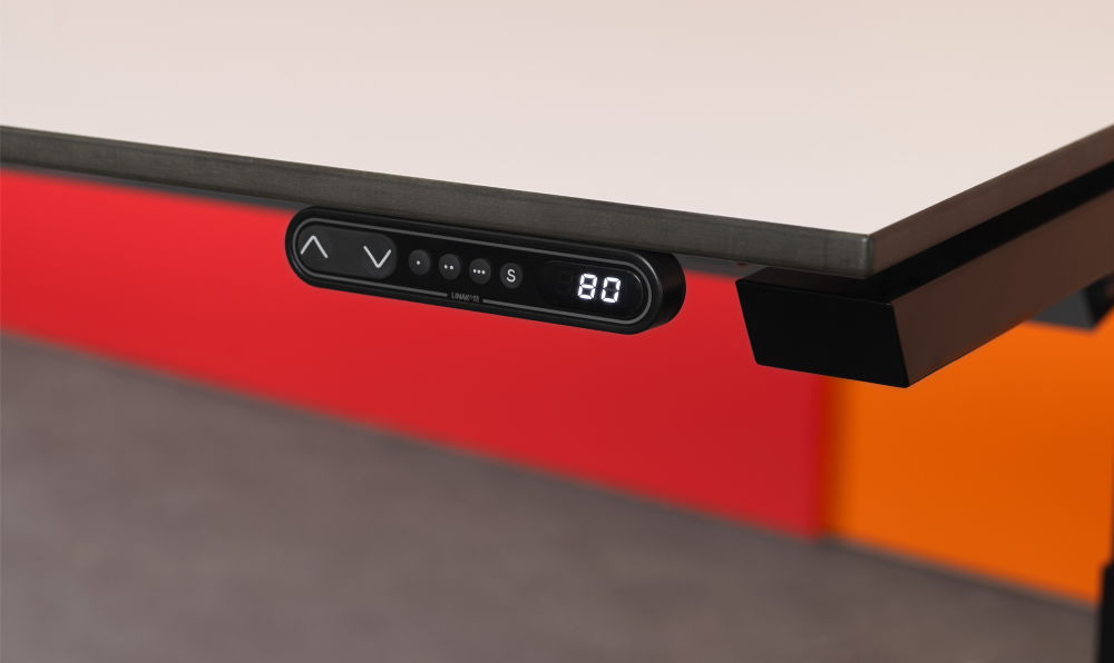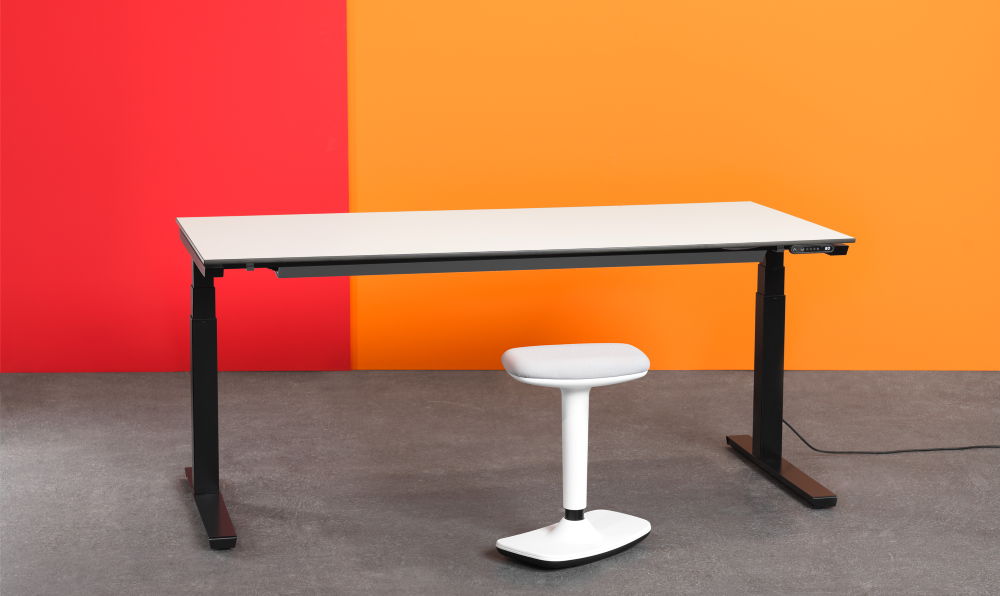 Elektrisch höhenverstellbar unterstützt er dich beim Wechsel zwischen Sitzen und Stehen. Damit bleibst du nicht nur Bewegung, sondern schonst deinen Rücken und Nacken.