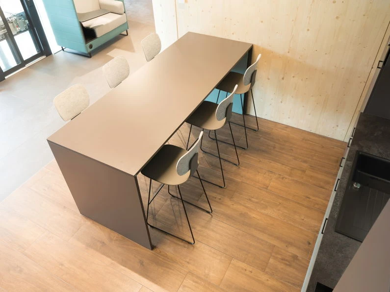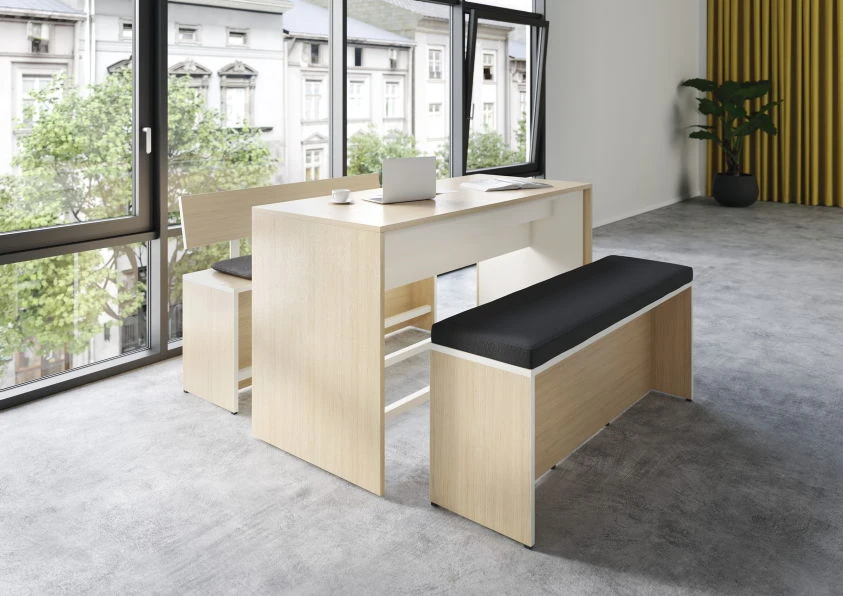 Der Meeting Point Solitaire ist ein stabiler Besprechungstisch in Barhöhe – stark im Auftritt, klar in der Funktion, optional mit Fußreling.