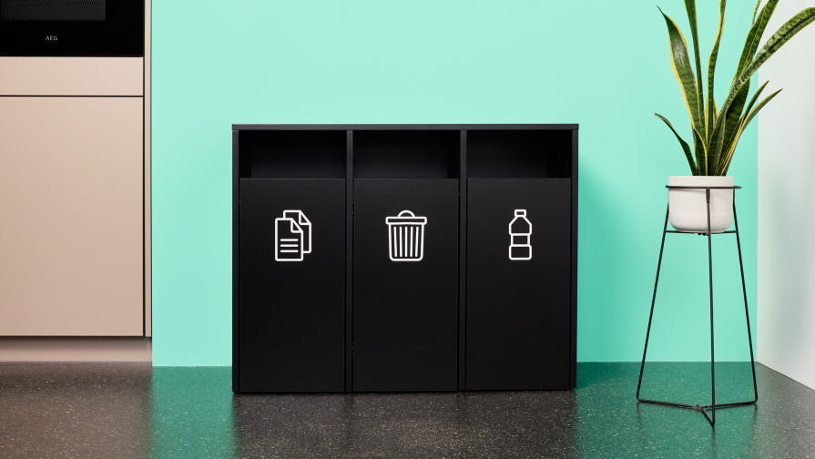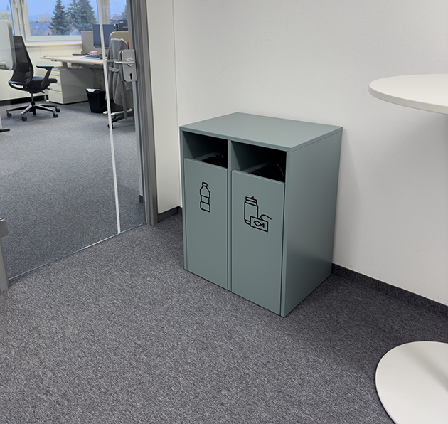 Mit dem Recycling Hub wird Mülltrennung im Office zum Kinderspiel. Er ersetzt viele einzelne Mülleimer durch eine zentrale Sammelstelle und schafft so Ordnung, spart Platz und unterstützt den nachhaltigen Büroalltag. Erhältlich als Single, Double oder Triple – für 1, 2 oder 3 Abfallfraktionen – lässt sich der Hub perfekt an die Bedürfnisse deines Teams anpassen.