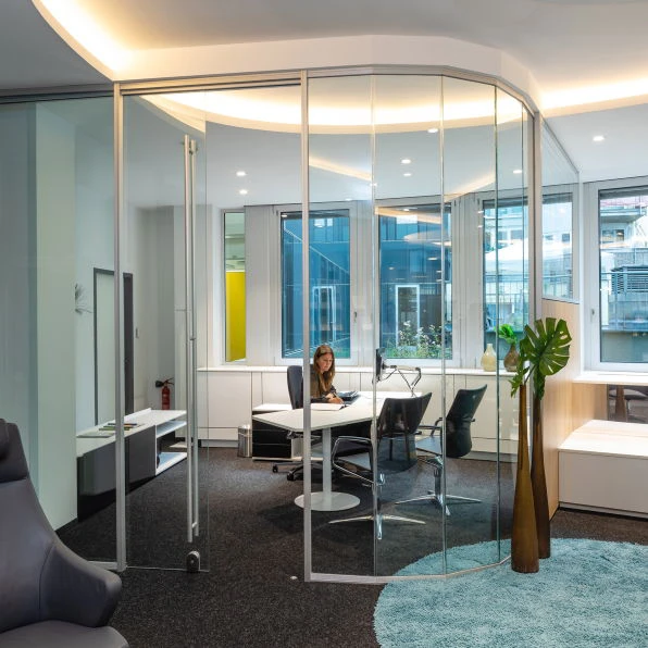 Die Raumtrennwand RS20 lässt sich vielseitig einsetzen, ob für die Zonierung großer Räume, zur Schaffung von Meetingräumen oder für Raum-in-Raum-Lösungen. So werden moderne Arbeitswelten geschaffen.