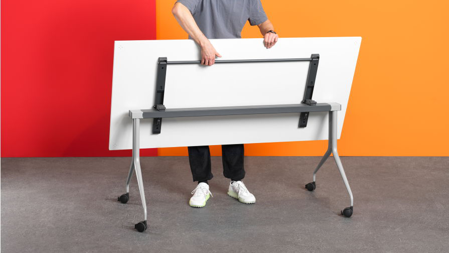 Der m310 Schwenktisch ist ideal für Räume, die sich oft neu erfinden. Mit seinem cleveren Schwenkmechanismus lässt er sich die Tischplatte im Handumdrehen aufstellen – so kannst du einen oder mehrere platzsparend verstauen. Robuste Rollen sorgen für maximale Beweglichkeit.
