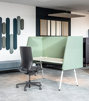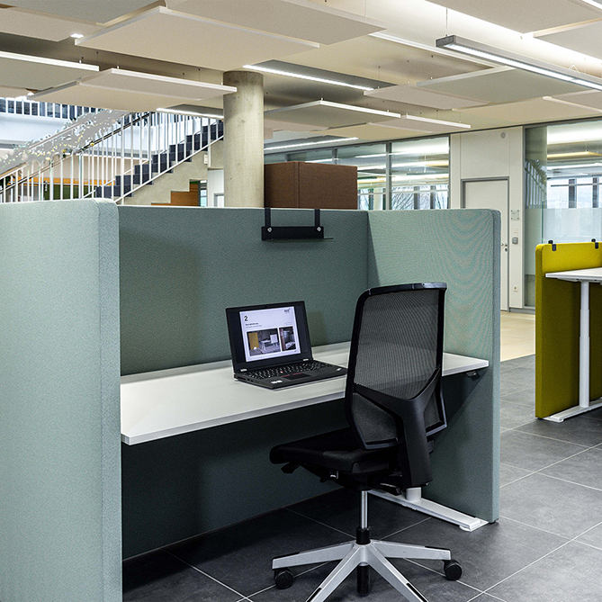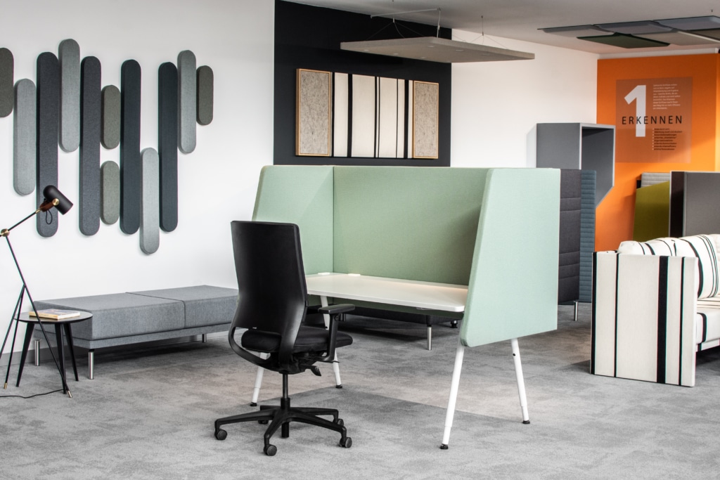 Dein Schreibtisch wird zur persönlichen Klanginsel. Tischpaneele und -einhausungen schützen vor störenden Nebengeräuschen und sorgen gleichzeitig für mehr Privatsphäre. Sie schaffen Rückzugsorte, ohne dass du komplett abgeschottet bist.