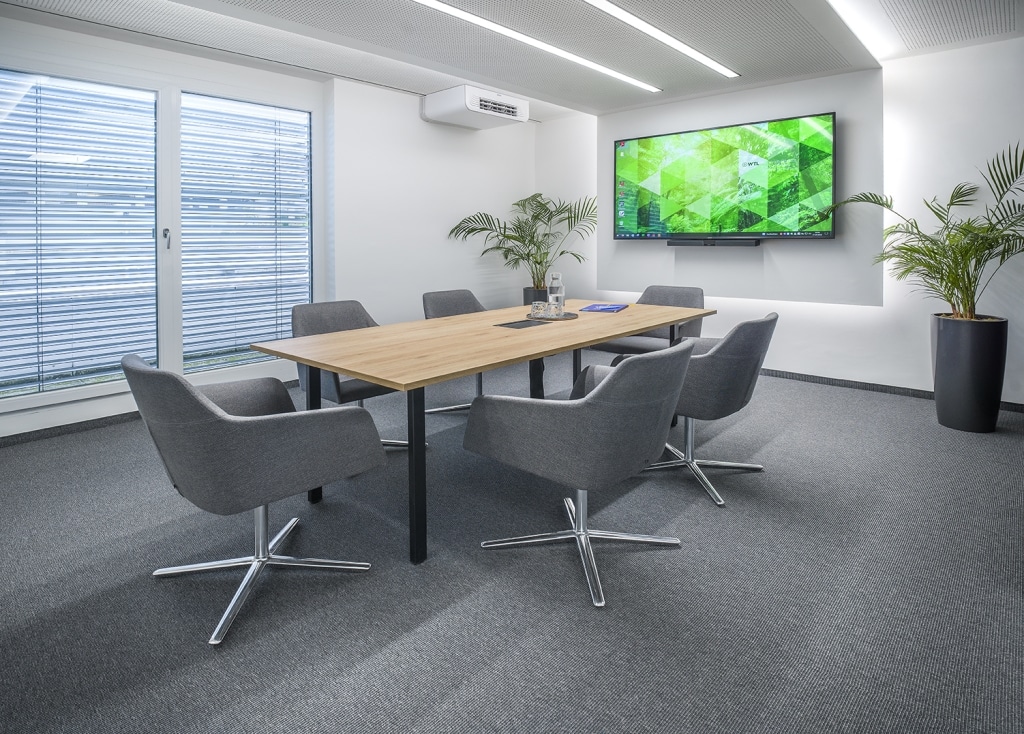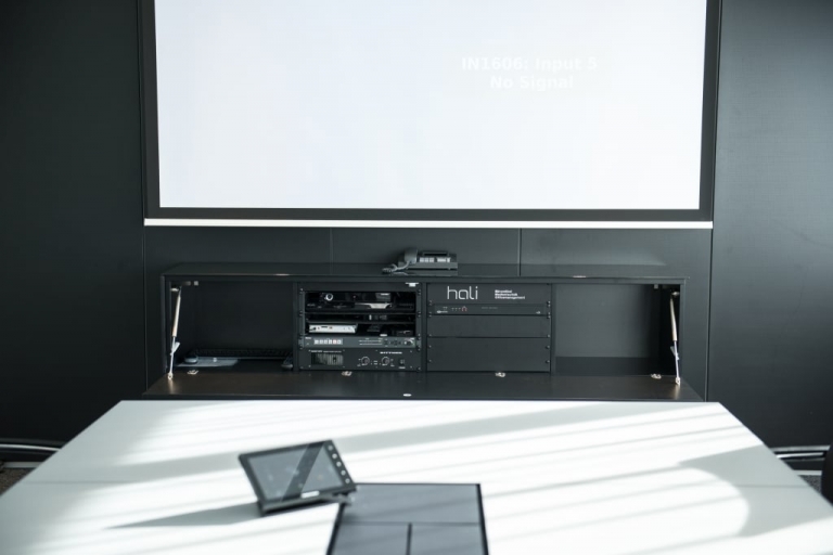 Bei hali erhältst du für deine Seminar- und Konferenzräume fortschrittliche technologische Gesamtlösungen aus einer Hand. Unsere Multimedia-Systeme, wie beispielsweise interaktive Screens mit Touch-Funktion, Videokonferenzsysteme oder Soundanlagen, eignen sich perfekt für Besprechungen, Präsentationen oder Workshops. Somit können Büroräumlichkeiten auch anders genutzt werden.