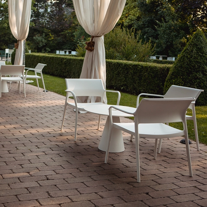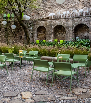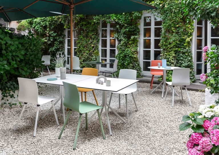 Vielfach wird der Outdoor-Bereich auch als Alternative zum Pausenraum genutzt – Stichwort Kantinenterrasse. Gleich wie im Gastronomie-Bereich ist hier dann eine ausreichende Terrassen- bzw. Gartenbestuhlung gefragt.