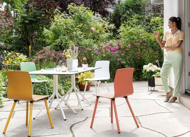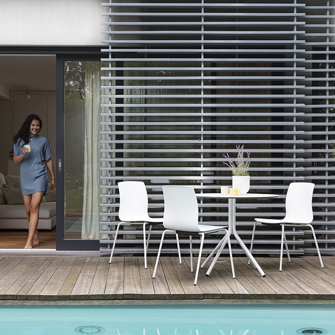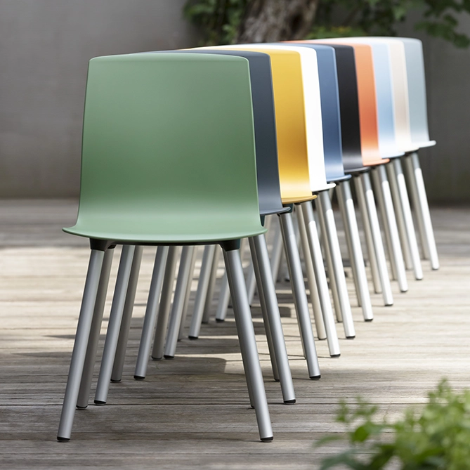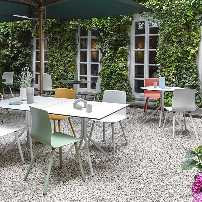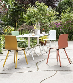 Wir bei hali treiben es bekanntlich gerne bunt – und das gilt auch für unsere Außenmöbel. Sie hauchen Gastro-Terrassen, Büro-Gärten und weiteren Outdoor-Bereichen frischen Wind ein und sorgen für ein farbenfrohes Ambiente im Freien. Von schönen Grautönen über warmes Senfgelb bis hin zu knalligem Rot spielt die Farbpallette bei uns alle Stücke. Gerade bei unseren Outdoor-Stühlen stehen rund 10 wetterfeste und UV-beständige Farben zur Auswahl. Auch schöne Polsterhussen sind zusätzlich erhältlich.