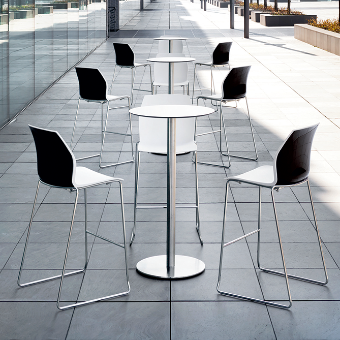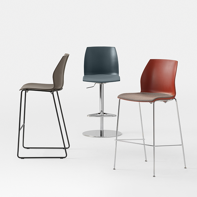 Barhocker sind die lockere Variante unter den Sitzmöbeln. Sie laden zu kurzen Pausen, schnellen Kaffeerunden oder informellen Meetings ein. Ob in der Kantine, an hohen Tischen im Meetingraum oder in der Lounge – Barhocker schaffen eine kommunikative Atmosphäre und setzen stilvolle Akzente.