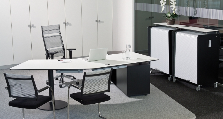 Gibt’s keinen fixen Platz im Büro, dann hat das mobile Stauraum-Möbel fürs Büro einen klaren Vorteil: Es kann ganz einfach mitgerollt werden. Wer sich seinen Platz mit einem oder mehreren Kolleg*innen teilen muss, hat so zumindest seinen eigenen Stauraum, der ihn in guten wie in schlechten Zeiten begleitet und ihm so manche Arbeiten abnimmt. Wenn es wieder mal so weit ist und ein Umzug ansteht, sind Caddies jederzeit bereit, cool und lässig durchs Büro zu cruisen. Doch auch wenn einfach nicht genug Platz ist, bietet es sich an einen Rollcontainer unter dem Schreibtisch zu platzieren.