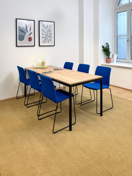 Ein Raum ist mit einem s600 Meetingtisch ausgestattet und bietet den passenden Rahmen für strukturierte Meetings und gemeinsame Entscheidungsprozesse.