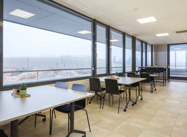 Auch die helle Cafeteria wurde im Zuge der Neuausstattung neu möbliert. Mit dem praktischem Schwenktisch m510 wurde eine funktionale Lösung gewählt, die den Anforderungen des täglichen Gebrauchs gerecht wird und eine angenehme Aufenthaltsqualität für Pausen und informellen Austausch bietet. Die reduzierte Gestaltung unterstützt die klare Formsprache des gesamten Projekts.