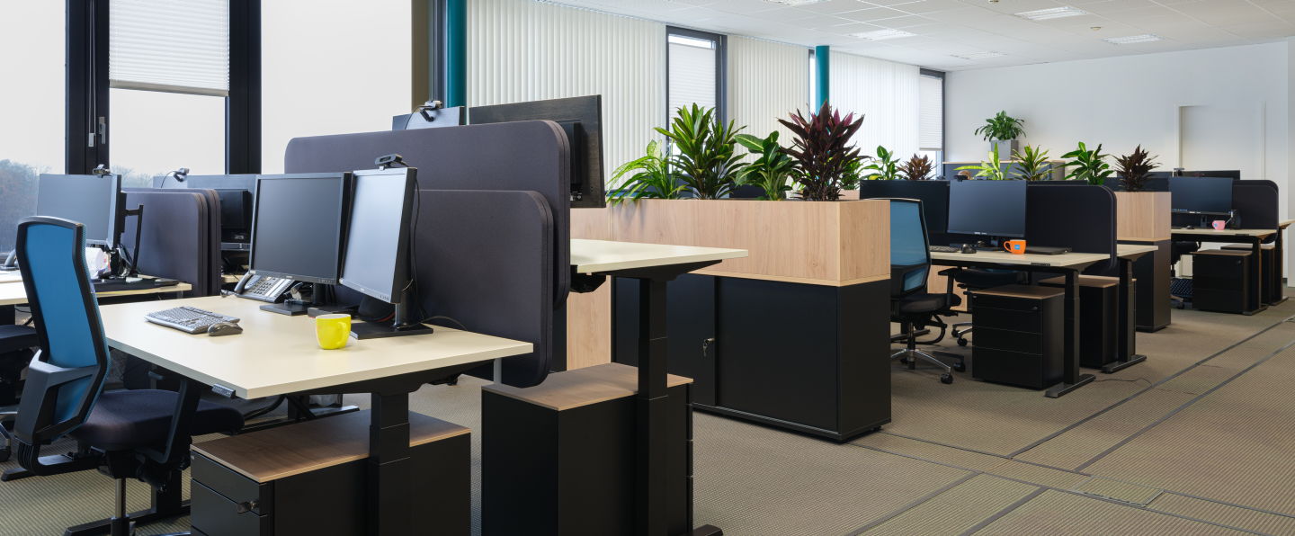 Zur Gliederung der offenen Fläche und zur Verbesserung des Raumklimas wurden Blumenwannen Evergreen integriert. Sie dienen sowohl als gestalterisches Element als auch zur natürlichen Zonierung des Großraumbüros. Ergänzend sorgen von der Decke hängende Zylinder für eine gezielte akustische Optimierung und tragen dazu bei, die Geräuschkulisse im offenen Arbeitsumfeld zu reduzieren.