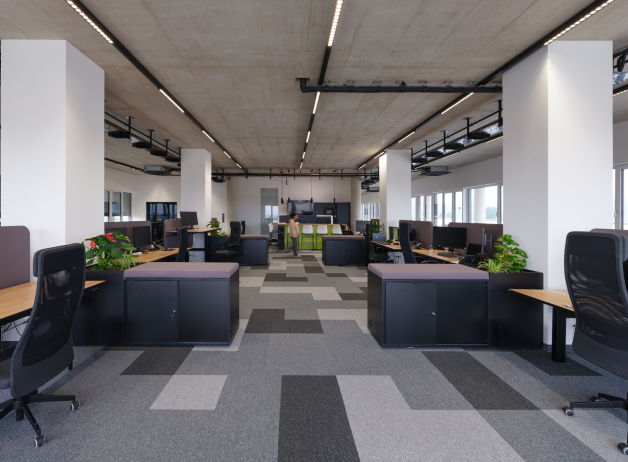 Im Großraumbüro stehen die Menschen im Mittelpunkt. Die 16 ergonomisch geplanten Arbeitsplätze bieten viel Raum für konzentriertes Arbeiten und effiziente Zusammenarbeit. Die höhenverstellbaren Arbeitstische – s136 Bench in Kombination mit akustischem Sichtschutzelementen schaffen Privatsphäre und Schiebetürenschränke mit Sitzbankauflage Stay einen Platz für schnelle Kommunikation. Großzügige Laufwege, viel Tageslicht und moderne Akustikelemente sorgen für ein motivierendes Arbeitsumfeld, das Teamwork und Wohlbefinden gleichermaßen fördert.